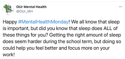 From OUr Mental Health at Twitter, make sure you get enough sleep! It's vital for good health... and for learning.